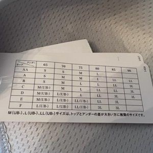 Grey Wing Bra size LL NWT. From what I can tell, it looks like about a 36C (80-85 centimeters). My daughter was stationed in Japan for 3 years and alot of her stuff is in Chinese. Very pretty chiffon band.