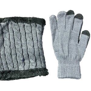 Grey Winter Knit Hat, Scarf and Glove set