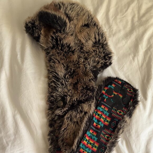Grey Wolf SpiritHood from around 2010 - Faux fur hood/scarf featuring wolf ears, paw-print lined pockets, and a hidden pocket, designed to embody wolf traits like loyalty, wisdom, and teamwork, popular for festivals/cosplay.