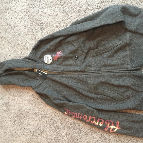 Grey Abercrombie and Fitch sweatshirt with hot pink lettering. New and Never worn.