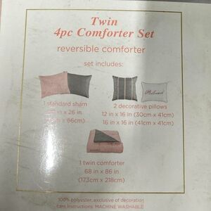 1 TWIN comforter. Reversable. Grey plain one side. Pink with writing on the other. 68" x 86"