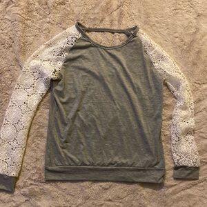 Grey and White Long Sleeve T-Shirt Light weighed shirt with lacey-looking arms Large Great condition 10/10