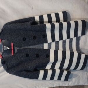 Grey and White Stripe Long Cardigan