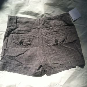 Very cute, grey and sparkly metallic pinstripe shorts. Linen/cotton/lurex blend.