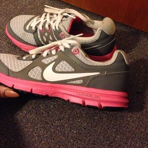 Grey and pink Nike Lunarlon running shoes