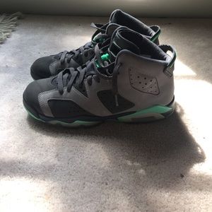 Grey and teal Jordan (forgot the number)