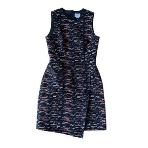 Tags: grey by jason wu, tweed dress, sleeveless sheath, size 4 dress, abstract print, dark multi colors, workwear style, sophisticated fashion, classic elegance, tailored fit, office chic, textured fabric, timeless wardrobe, versatile dress, modern professional look