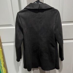 Thin grey coat from New Look. US Size S. Nearly perfect condition - only worn a few times. Thin material, Mostly polyester. Zippered pockets on each side. Willing to negotiate! I need to clear out my closet!