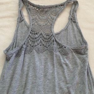 Grey tank top with a crochet racer back. Never worn and willing to negotiate :)