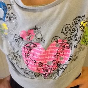 Grey crop top with colored hearts