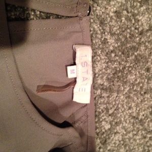 Grey crop top with black lining down the sides. Button with opening on the back. Worn once but never gets out of my closet. Not sure what the brand is exactly but bought it at nordstrom rack