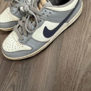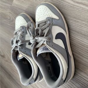 Nike sneakers with a gray and cream color scheme. Ideal for active kids.