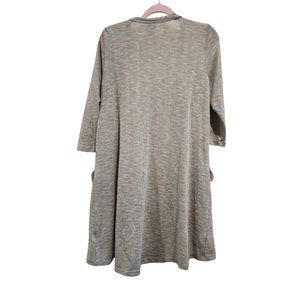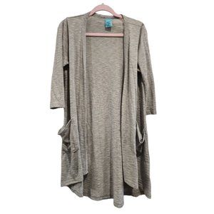 Description: Grey open front duster cardigan with 2 front pockets and 3/4 sleeves