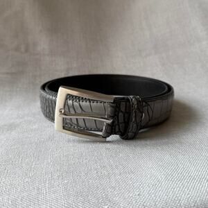grey engraved alligator pattern western style belt y2k style vegan leather