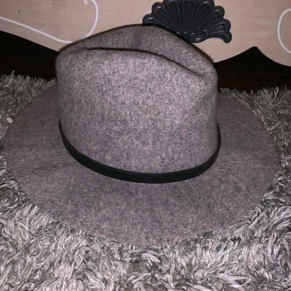 Gray wool hat with black trim