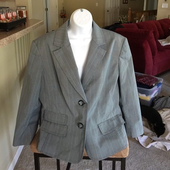 Great jacket with small pinstripes of light blue and black. Good for work 😀