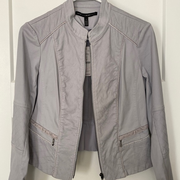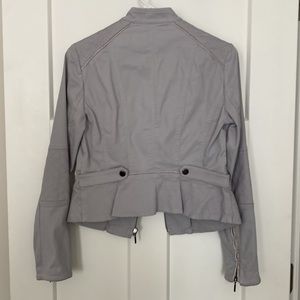 Adorable grey jacket from WHBM. Small orange stain on interior, not sure where it came from but it isn’t visible when you are wearing the jacket. New with tags!