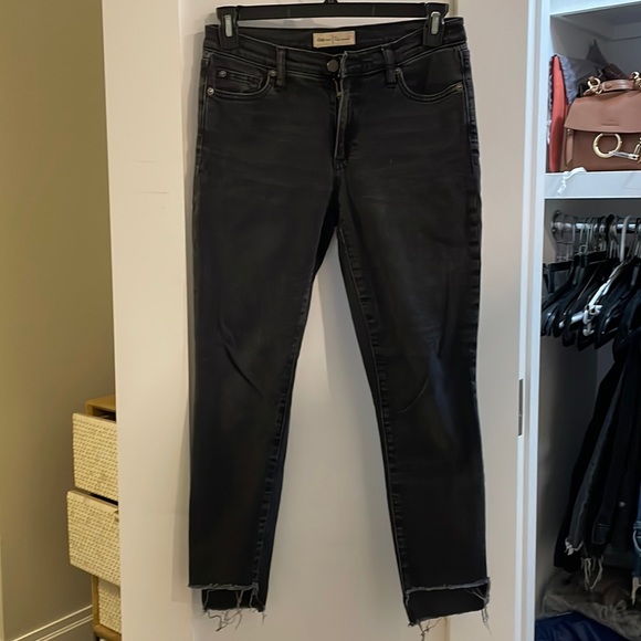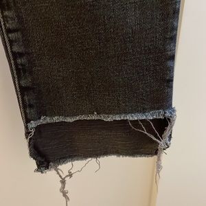 Stretchy. Good condition. Mid-high rise - 9”. Raw hem. 24” front inseam and 26” back inseam. Zipper fly