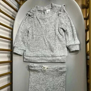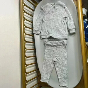 Grey knit baby girl OshKosh B’gosh sweatsuit matching set no flaws ruffle detail