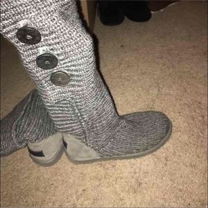 Grey authentic knit uggs size 8. In the 3rd picture there's a stain on the side that I couldn't get out. They have been worn plenty of times they aren't in new condition. They do not come with the box.