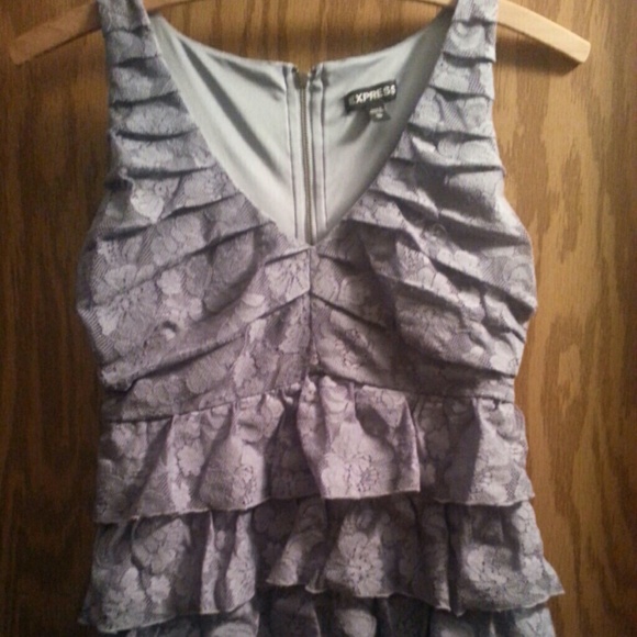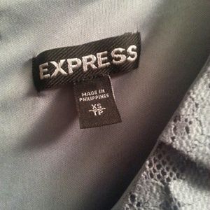 Sexy little grey lace express top. Ruffles on bottom. Zipper on the back. Very flattering top. Worn once. Size XS