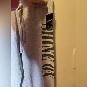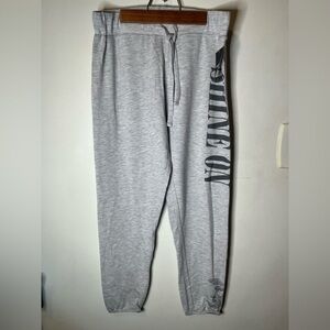 Size large forever 21 NWT light gray joggers “shine on”down left leg