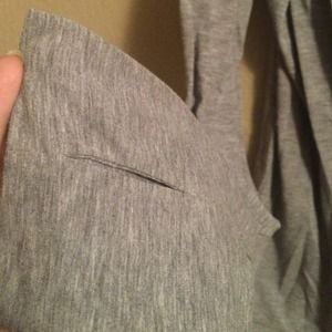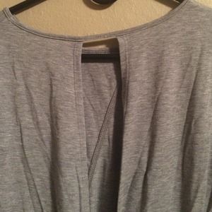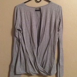 This grey long sleeve workout too has large cuffs with thumb holes. It also has an open back that is nicely draped. Worn once or twice only.