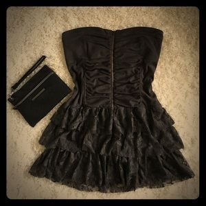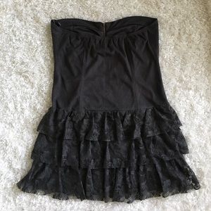 This is a fabulous American Rag size large dress. Strapless with a zipper down the front half. The back does have elastic so there is some wiggle room to fit in. This is in excellent condition great for a date night or a trip to the club! 100% Polyester. Make me an offer!!