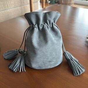 Grey nubuck suede bucket crossbody drawstring bag