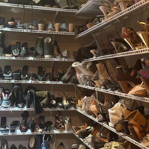 Grey, ombre toed high heeled boots - can you find them in my closet?