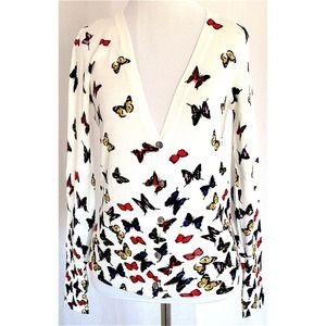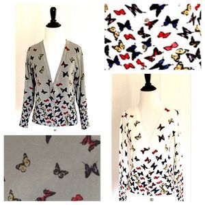 Colorful and so unique! Pretty butterfly cardigans available in grey and white. One size fits most.