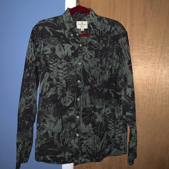Grey and black patterned casual men's button down form American Eagle
