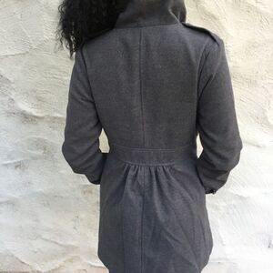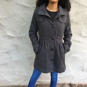 Gray peacoat. Lined. Buttons in the front. Has front pockets. Perfect for fall and winter. I’m 5’4” for reference.
