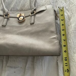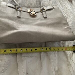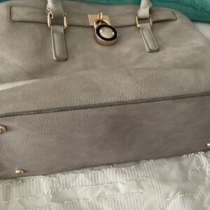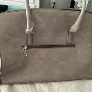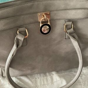 Grey pocketbook. Some minimal fraying on the handles but other than that in relatively good shape.