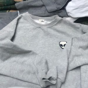 Super cute grey sweater with alien on it, in perfect condition, no stains or rips.