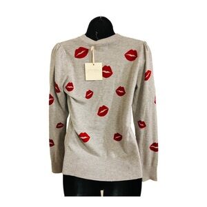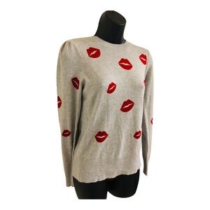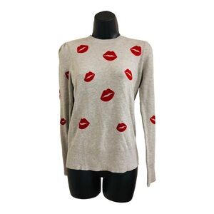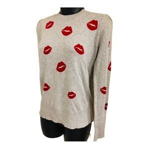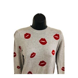 Grey red lipstick femme lips crewneck long sleeve knit sweater size XS brand new