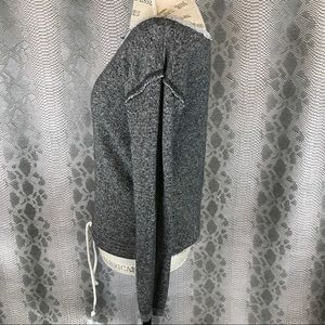 Aerie brand . Grey old school sweatshirt feel . Off shoulder . Scoop swoop neck . White drawstring tie waist . Perfect comfy chic long sleeve top !