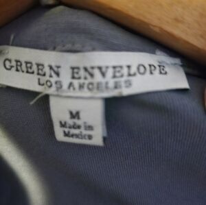 this listing is for this business casual grey stretchy knit button down shirt with a full collar. it's a sz. M . it's in very good condition, will pair nicely with my black and white elastic waist skirt. perfect for the office or a lunch or with friends.
