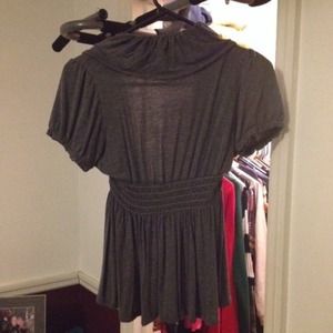 Darker grey top to go over a tank top or Tshirt, very cute and comfy, the back crunches in the middle and the front has cute ruffles! Size medium but I think it fits more like a small. I prefer paypal, message me!