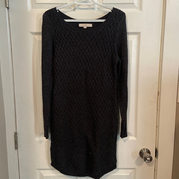 LOFT size small charcoal grey sweater dress with cable pattern. In excellent condition, never been worn but tags have been removed. Hits just above my knee on 5’5” frame.