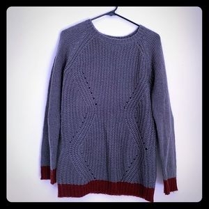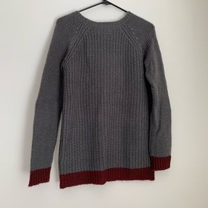 Pull over, tunic style sweater. Grey with cool burgundy trim. Great condition, rarely worn and well-cared for.