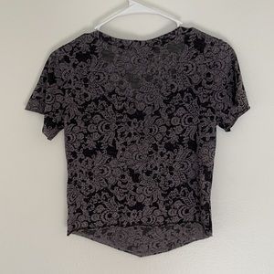 Grey tshirt with pattern, swoop bottomed front