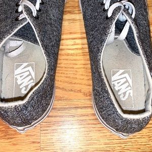 Grey vans with full laces just have them tucked in some dirt on bottom of shoes in good condition.