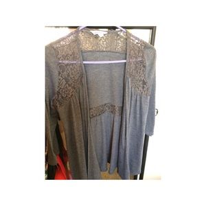 Super soft, grey cover up with lace detailing , perfect with a pair of jeans and a cute top.