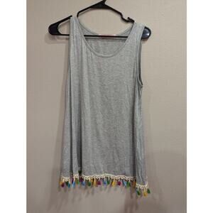 Grey women's tank top w/multi color tiny tassels at bottom hem size M