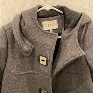 Quilted grey wool coat. Hits upper thigh. 36 size. French sizing. Claudiepierlot. Worn on a few days