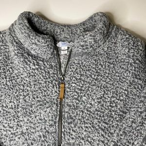 Super soft grey pullover. Has pockets and a functional zipper on the front.