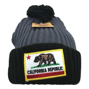 Grey/Black California Republic Thick Warm Winter Beanie Ski Cap Snowboard Hat