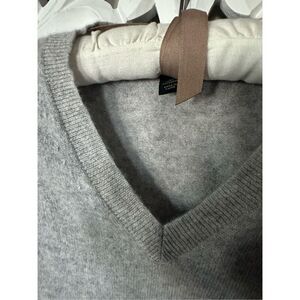Created for Macy's. V-neck. 2-ply yarn for durability and to help reduce pilling. Excellent condition! Super soft. No holes. Stock image is similar but not exact. Color is a bit darker grey than in image.