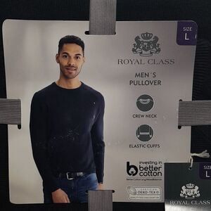 This classic top will always be in style. It is a size L. The material is sooo soft you will want to wear it 24/7. It fits true to size. This shirt has a different and interesting pattern to the fabric so you will never get bored.